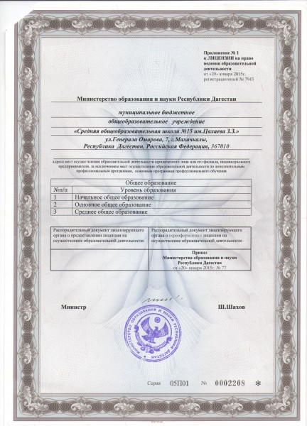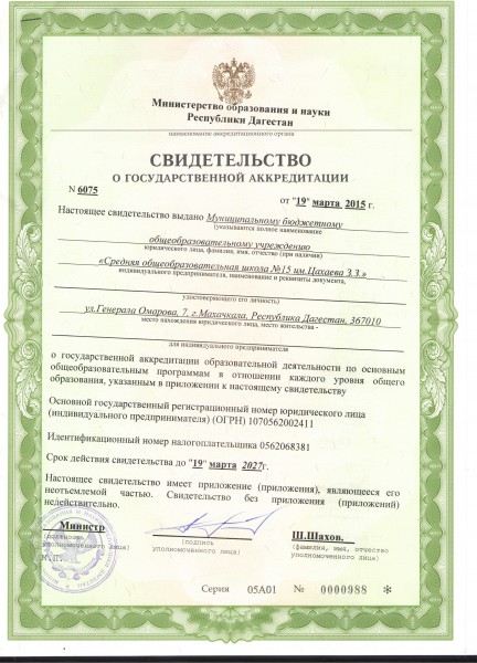 | Полное наименование образовательной организации* | Муниципальное бюджетное общеобразовательное учреждение "Средняя общеобразовательная школа № 15 им. Цахаева З.З." |